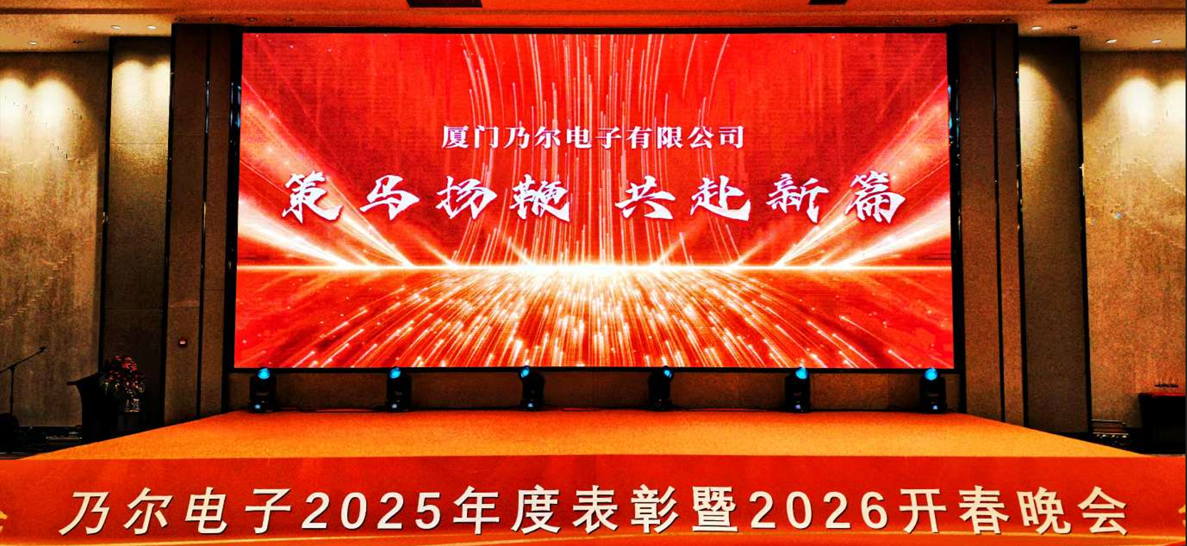 星光璀璨,共襄荣耀盛典;策马扬鞭,同启崭新篇章。2月28日晚,厦门乃尔电子有限公司“策马扬鞭•共赴新篇”2025年度表彰暨2026开春晚会,在喜庆热烈的氛围中盛大举行。全体乃尔人齐聚一堂,回首2025年征程,致敬奋斗时光,以昂扬姿态迎接丙午马年,共赴一场荣耀与欢乐交织的盛会。